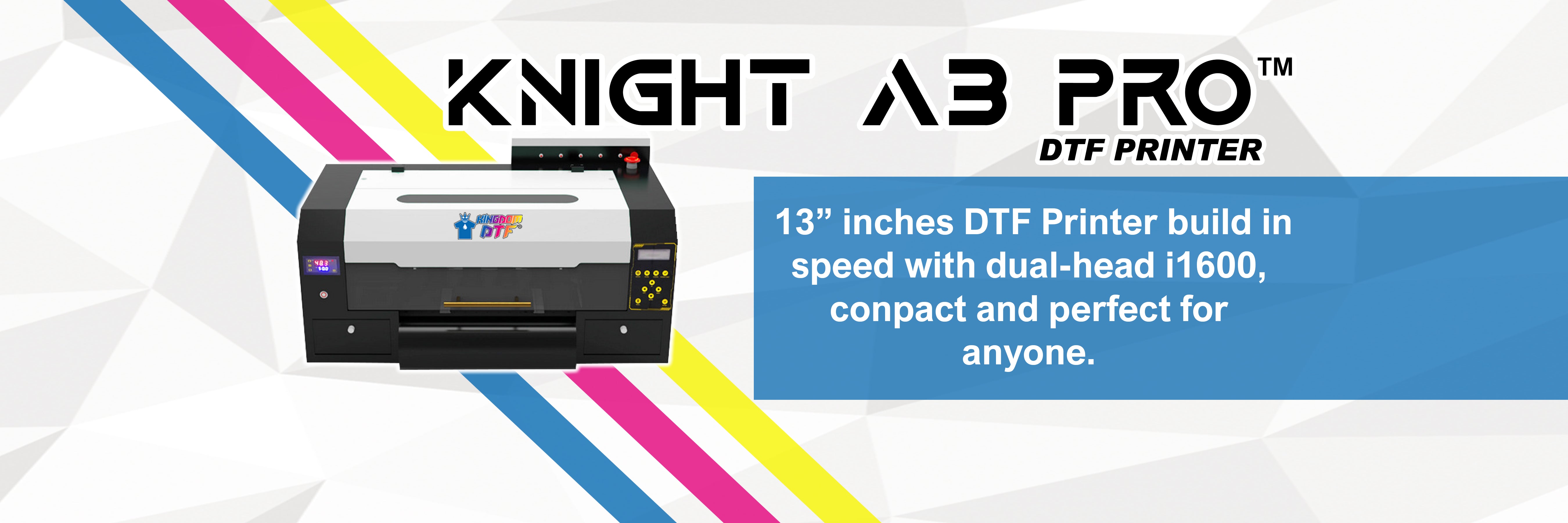 A DTF printer, DTF inks, transfer film, adhesive powder, and a heat press. You can also skip printing and order ready-to-press transfers.